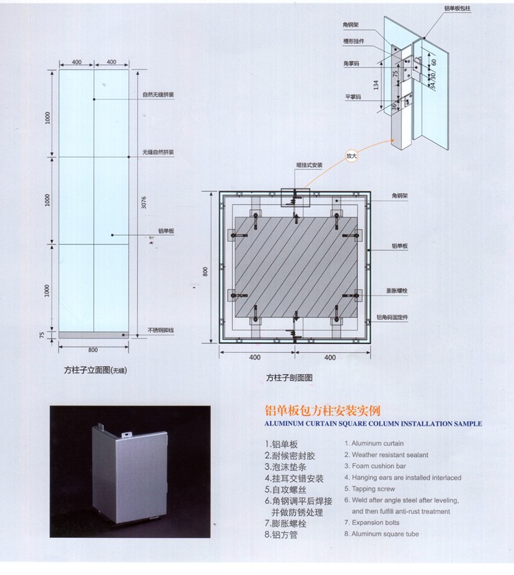 網(wǎng)站首頁(yè) - 產(chǎn)品展示 - 包柱鋁單板 - 方型無(wú)縫包柱鋁單板